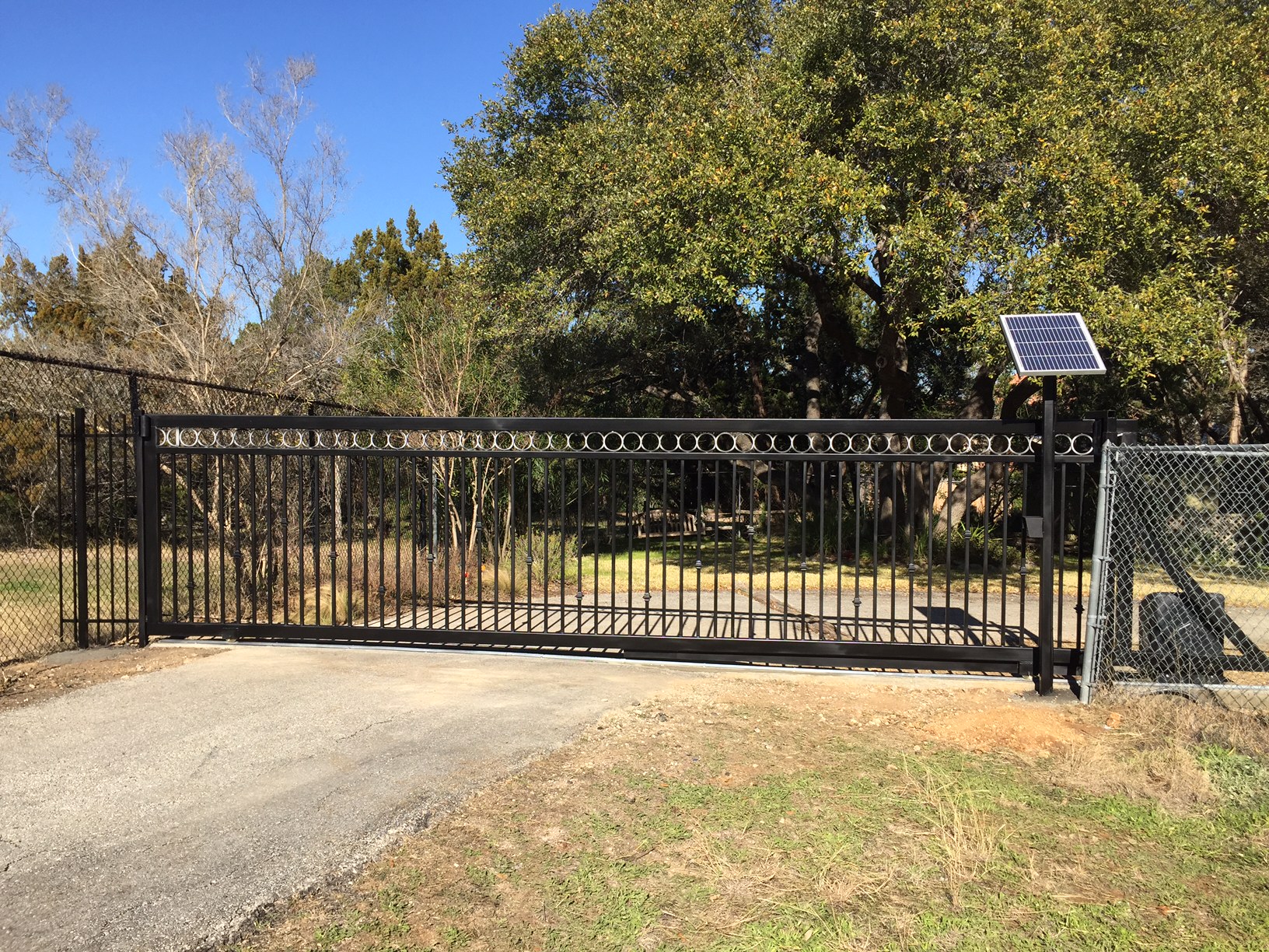 Not only can we build you a custom metal gate but we also sell and install the operating systems. Offering a “turn-key” experience just like we do with our outdoor kitchens makes the process completely stress free for you. We take the trouble of coordinating several different contractors out of the equation. When it comes to the electronics, we can install solar panels, keypads, button clickers, and just about any accessory you will need. We use high quality commercial rated operators to insure many years of trouble free use.