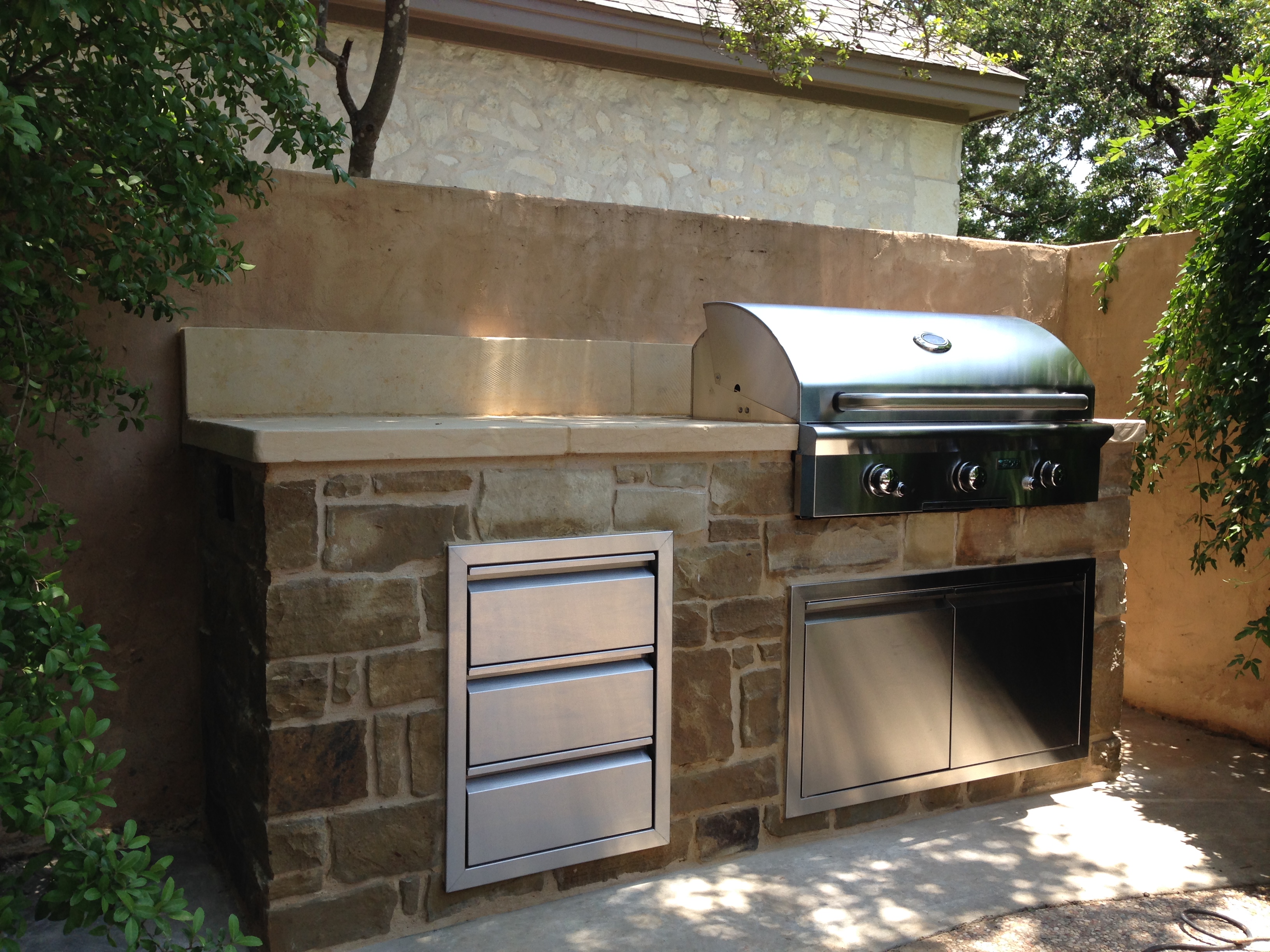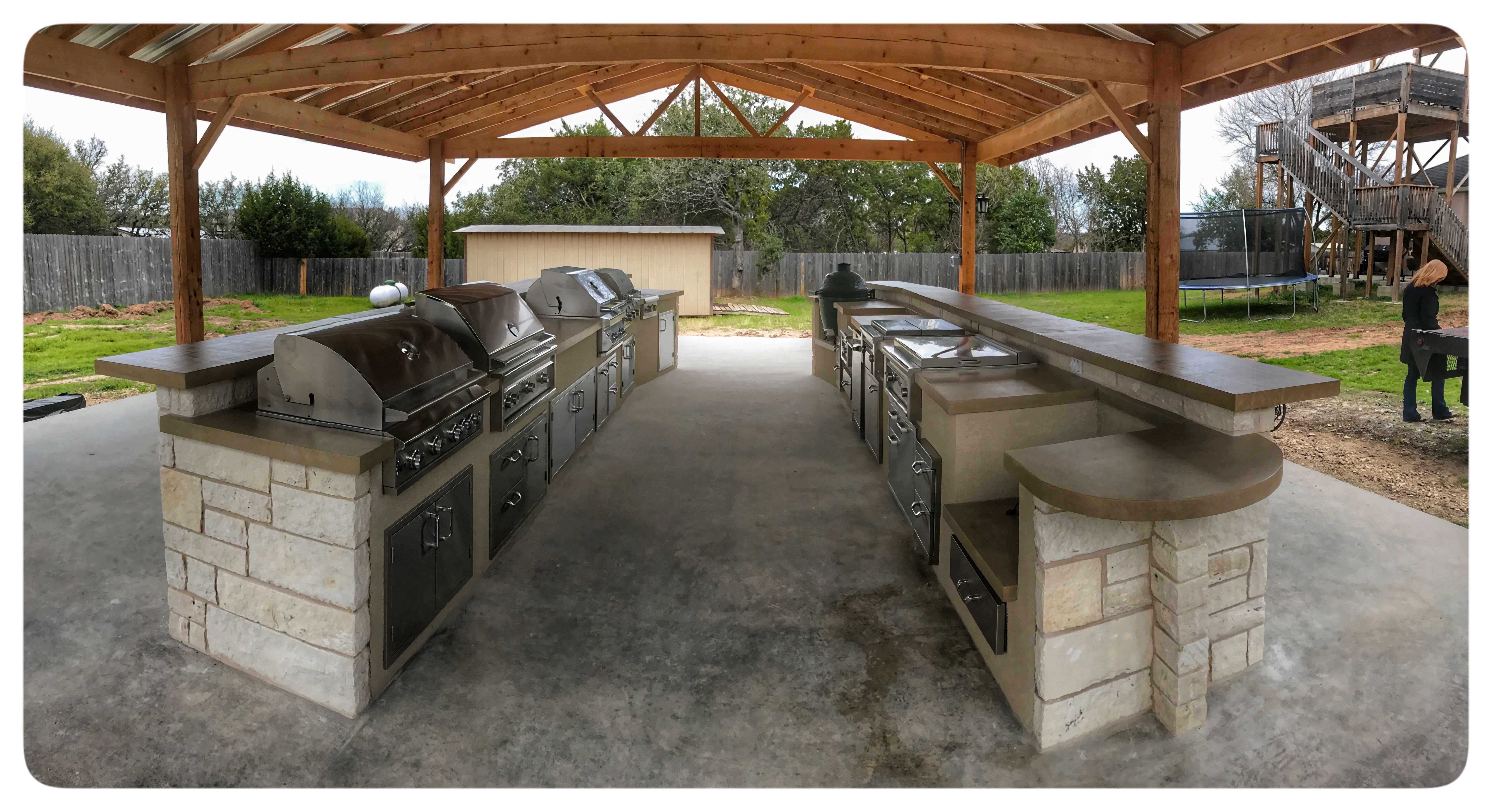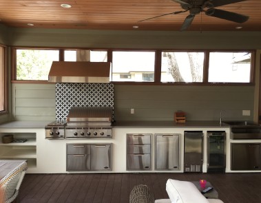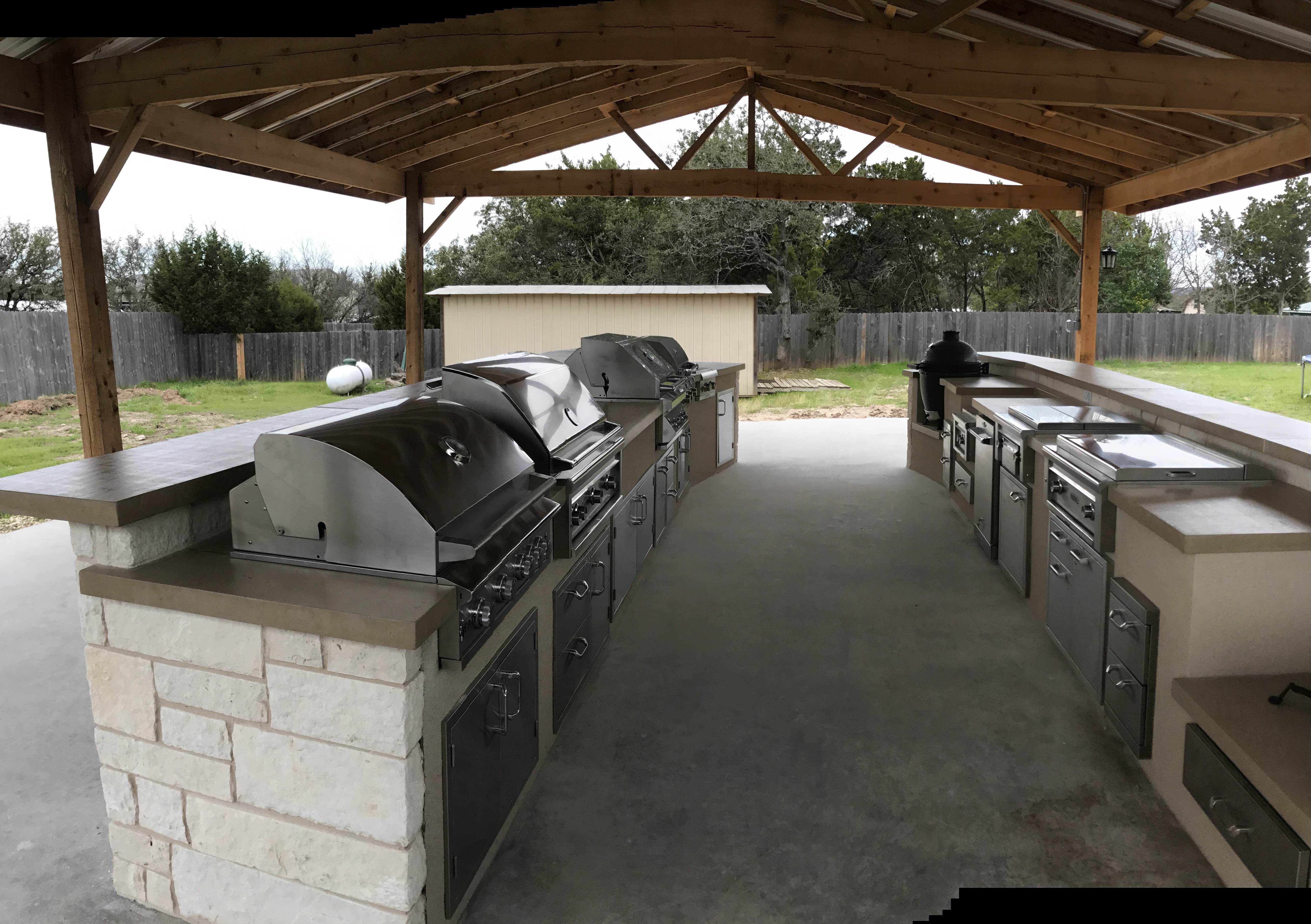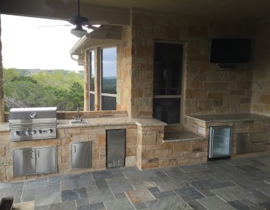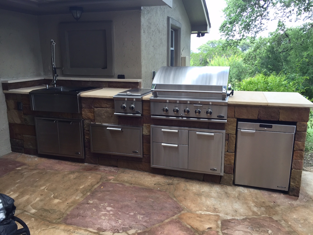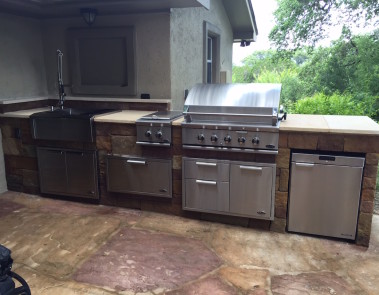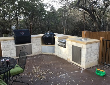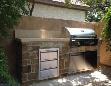 Designing and building turn-key outdoor kitchens in Austin IS our specialty here at Ember. An outdoor living space is an area that can be enjoyed by every member of the family, gathering around the grill for burgers by the pool, or relaxing with a glass of merlot and grilling up a filet. When constructing an outdoor kitchen we build our structures to last using only rock, mortar,CMU, and steel. If a stucco kitchen is the look you’re after, we can build the structure itself out of steel and then attach hardy backer for the stucco to adhere to. We try to steer our customers away from cheaper methods that while look ok for a year or two, usually end up having to be re-built.